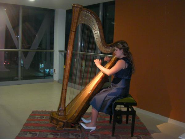 El autor explicaba así la exposición, que estará en el Museo de la Ciudad hasta el próximo 27 de enero, y lo hacía en una tarde muy especial en la que se rodeó de amigos y de amantes de la música. Y es que, para completar la tarde, estuvo acompañado de la jovencísima Jimena Eisele, que ofreció un concierto de arpa tras la presentación de la exposición.
