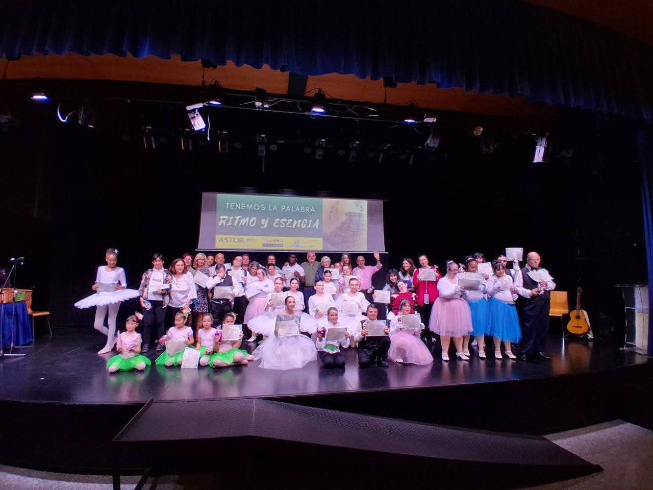 El acto, organizado por "Tenemos la Palabra" bajo el nombre "Esencia y Ritmo", reunió en el escenario a los miembros de este grupo junto a "Poesía en Movimiento" (el grupo de danza poética también de Astor), la Escuela de Danza La Caja del Arte, la Tertulia Poética Desván, Voces de Mujer y el músico Víctor Baena, del Colectivo Ítaca, que acompañó con su guitarra varios de los recitales.