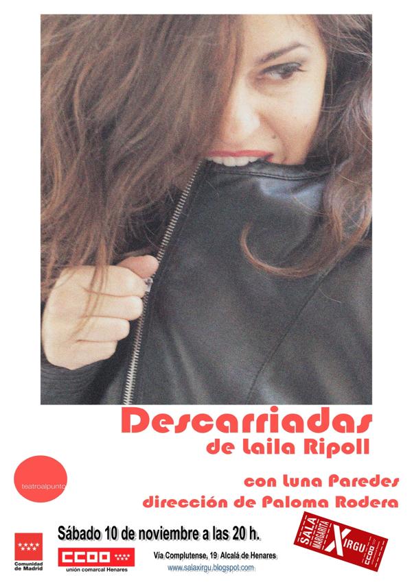 Descarriadas, un monólogo teatral escrito por Laila Ripoll, dirigido por Paloma Rodera e interpretado por la alcalaína Luna Paredes, es un concierto de rock y es teatro. Es la historia de una época, no tan lejana, en la que en España existieron unos supuestos «reformatorios», que eran auténticas cárceles veladas, en las que se sometía a ciertas mujeres a torturas de todo tipo, incluyendo el robo de sus bebés. Una historia que ha sido silenciada. Un silencio que ahora se hace grito.