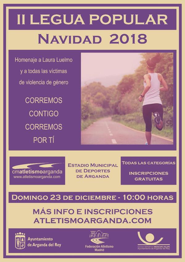 Por iniciativa del Gobierno Municipal y la Concejalía de Deportes, la Corporación Municipal ha acordado que la II Legua Popular Navidad 2018 que se celebrará el próximo domingo, sea un homenaje a la profesora Laura Luelmo, última víctima de la violencia machista. Homenaje extensivo a todas las víctimas de la violencia de género. Prueba que se celebrará bajo el lema “Corremos contigo, corremos por ti”.