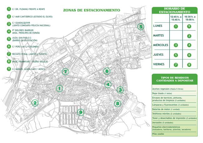El Punto Limpio Móvil continuará manteniendo la recogida de todos los residuos que hasta el momento realizaba manteniéndose, los pequeños electrodomésticos, aceites usados, pilas, baterías, ropa usada, aerosoles, teléfonos móviles, etc., no variándose en ese ámbito el servicio prestado.