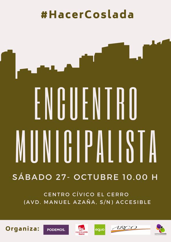 Estructurado en cinco ejes de trabajo – territorio y medio ambiente, feminismo, servicios a la ciudadanía y hacienda y economía – el encuentro se plantea como un punto de unión de cara a presentar una coalición de fuerzas en las elecciones municipales de 2019 para transformar la ciudad y que sea la suma de todas las sensibilidades y colectivos de Coslada. A través del debate se intercambiarán ideas y experiencias con la que construir una alternativa al modelo político bipartidista y liberal que lleva gobernando el municipio desde hace dos décadas.