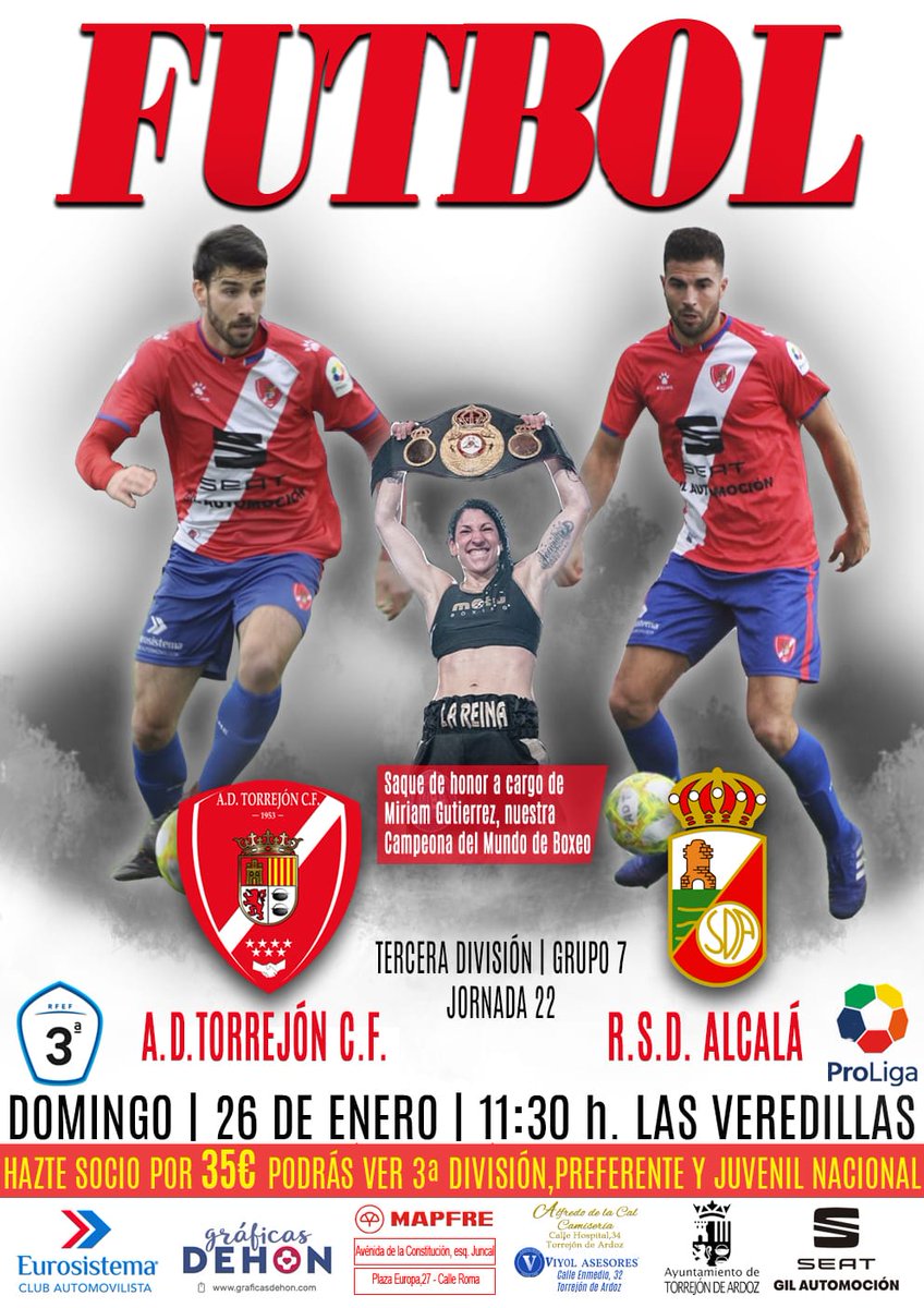 Esta mañana Torrejón vivirá la gran rivalidad deportiva del Corredor, pues la AD Torrejón y la RSD Alcalá se enfrentan en el primer derbi del año, un partido con sorpresa, pues la boxeadora Míriam Gutiérrez será la encargada de hacer el saque de honor del encuentro.
