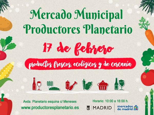 Este mercado, que se celebra el tercer domingo de cada mes, funciona de 10 a 16 horas en las en las cubiertas de la Avenida Planetario, esquina con calle Meneses, junto al parque Tierno Galván, en el distrito de Arganzuela. Las siguientes ediciones serán el 17 de marzo, 21 de abril, 19 de mayo, 16 de junio, 21 de julio, 15 de septiembre, 20 de octubre, 17 de noviembre y 15 de diciembre. En este enlace puedes encontrar el listado con las empresas participantes: http://productoresplanetario.es/expositores