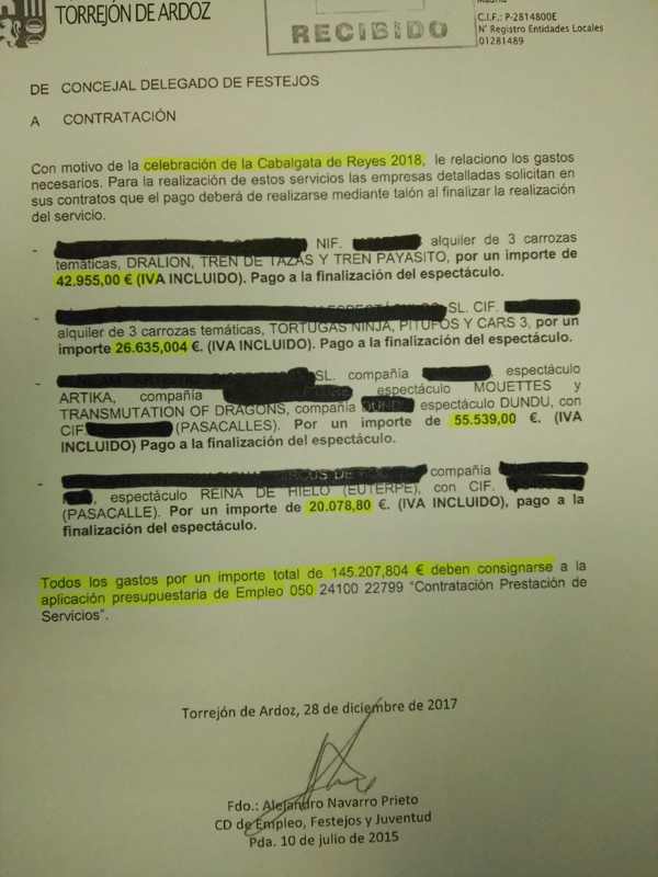 Hace sólo cuatro días que han terminado las Mágicas Navidades de Torrejón, y ya han comenzado a ser polémicas, pues el portavoz de Ciudadanos hacía públicos ayer los primeros gastos reconocidos de la Cabalgata de Reyes del pasado 5 de enero, una Cabalgata en la que, según el documento publicado por Jerez en Twitter, seis carrozas y cuatro pasacalles costaron casi 150.000 euros.