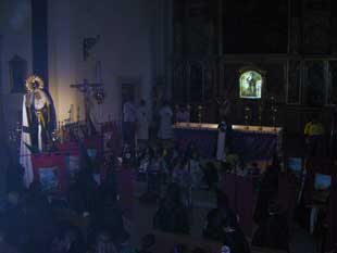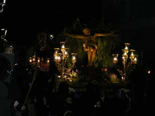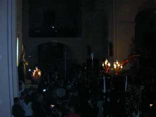 Por culpa de la lluvia hubo que recortar recorrido y procesionar por los soportales
