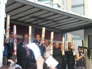 El pasado sábado Torrejón celebraba un acto muy especial, y es que, con motivo de la celebración del Año Internacional de la Fe, las Parroquias de la localidad decidieron celebrar un Acto Público de Fe en medio de la Plaza de España de la localidad, y lo hicieron a lo grande: rock católico, un coro, testimonios, la presencia de los ocho Cirios Pascuales, y el mismísimo Reig Pla en una cita que llenó la Plaza durante casi dos horas.