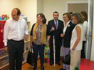 El alcalde de Torrejón, Pedro Rollán, y el concejal de Administración, Bienestar e Inmigración, Rubén Martínez, acompañados por la presidenta de la Asociación de Padres con Hijos con Discapacidad Intelectual (ASTOR), Mari Carmen Villena, han visitado el nuevo local que ha supuesto la ampliación del Centro de Atención Temprana que tiene esta entidad en el municipio. Una reforma que ha permitido poder atender a 20 usuarios más y crear tres nuevas dependencias, como el despacho de atención del psicólogo, una aula para el taller de logopedia y otra para el de estimulación. Además, se han procedido a unir los dos locales que han sido cedidos a ASTOR por el Ayuntamiento, quien además ha aportado a este programa durante el pasado 2012 una subvención de 55.000 euros, lo que significa que el 35% del coste total de 60 plazas son sufragadas por el Consistorio torrejonero.