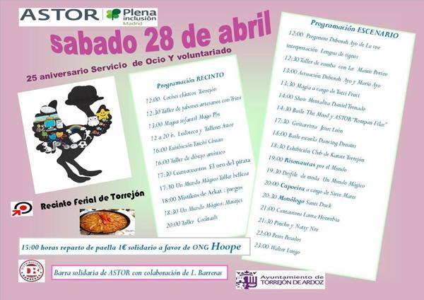Hoy es un día muy especial para ASTOR, ya que su servicio de ocio y voluntariado cumple 25 años de vida, y por eso lo van a celebrar de una forma muy especial en el Recinto Ferial. Así, desde las doce de la mañana y hasta las doce de la noche, organizarán actos, talleres y actuaciones en dos escenarios.