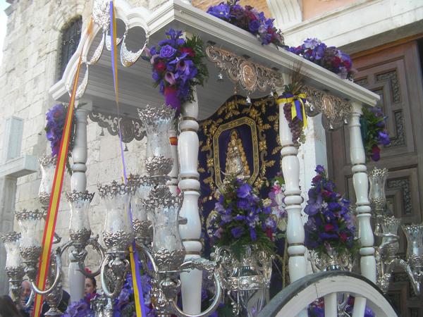 La lluvia, muy intensa, sólo duró unos cinco minutos, pero fue suficiente para rebajar el calor, lo que dejó una noche muy agradable para la celebración, a las doce, del tradicional Rosario, uno de los momentos más espectaculares de la Romería. A la mañana siguiente, otra Misa de Romeros bajo el sol abría una jornada que terminaría a las ocho de la tarde con el retorno de la Blanca Paloma a la parroquia de San Juan Evangelista.