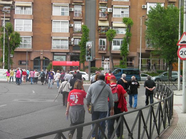 Allí llegaban pasado el mediodía, entrando en la localidad torrejonera por la rotonda del avión, y siguiendo toda la Avda de la Constitución hasta la rotonda del Puente de los Americanos. Y justo en ese sitio se vivía el primero de los encuentros que se van a realizar en cada una de las localidades que van a recorrer las Marchas contra la Precariedad en su viaje hasta Rivas: los torrejoneros, con la Plataforma en Defensa de las Pensiones y el movimiento feminista a la cabeza, recibían a sus compañeros de Alcalá antes de reanudar la larga marcha que les llevaría hasta la mísma Plaza Mayor.
