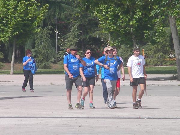 Así, desafiando el calor, unos mil caminantes tomaban la salida, a eso de las nueve de la mañana, de la Plaza de Toros de Mejorada, con la intención de recorrer once kilómetros y medio hasta el Recinto Ferial de Torrejón. Intención, porque lo cierto es que los primeros hicieron un recorrido bastante más largo al coger un desvío que no estaba en la ruta original. Eso sí, el desvío sirvió para que casi todos los caminantes azules llegasen a Torrejón a la vez, en un intervalo de menos de quince minutos.