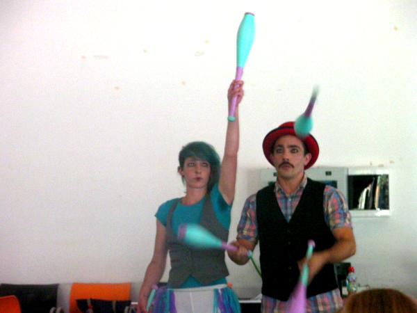 Así la tarde comenzaba, como es habitual, con los discursos, y proseguía con una actuación corta pero intensa de Toom Pak. A continuación los encargados de hacer reir a los pequeños saharauis fueron el grupo Somachibum Circus, que ofreció un número de malabarismos antes de ofrecer un espectáculo de danza aérea.