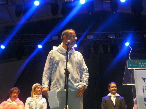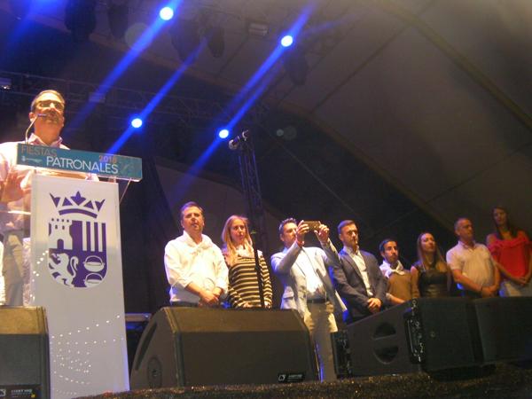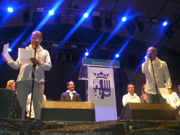 De tal forma Felix José Casillas y Fernando Ruiz se acercaron a dos micrófonos situados sobre el escenario después de que el presidente de la Hermandad de la Virgen del Rosario utilizase el atril oficial. Los dos periodistas comenzaron hablando de los deportistas torrejoneros que habían dado el pregón de las Fiestas de la localidad en el pasado, y recordaron especialmente a uno que nunca lo ha dado, Guti.