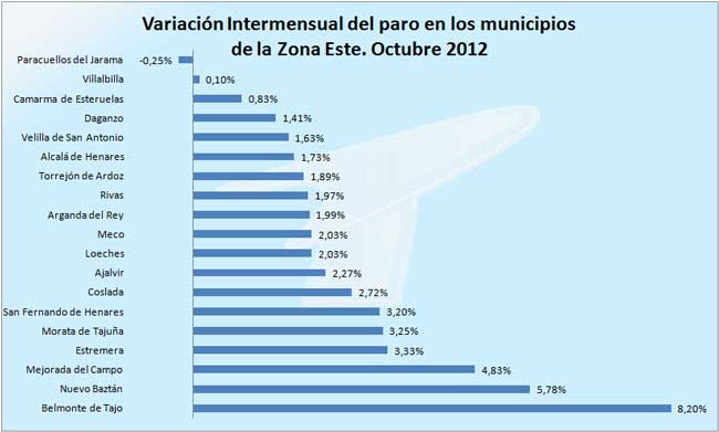 Casi mil quinientos nuevos parados es el resultado que deja octubre en la Zona Este, un resultado que sigue exactamente la misma tendencia que el resto de España. Si el mes pasado había motivos para confiar en que algo estaba cambiando, ya que siete municipios conseguían crear empleo, en la última estadística se demuestra que no era más que un espejismo: todos los municipios de la Zona Este destruyen empleo, salvo Paracuellos, llevando el total a la peor cifra de los últimos años.