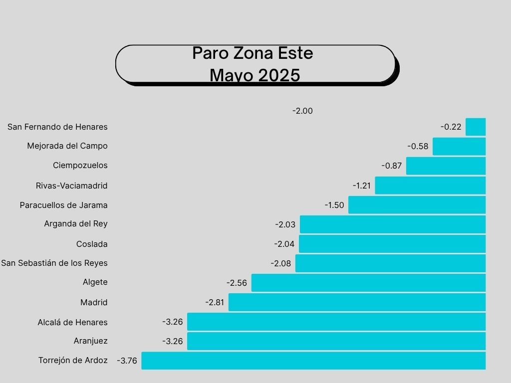 Alcalá, Aranjuez y Torrejón, municipios con mejores resultadosCon la llegada del buen tiempo los datos de desempleo mejoran aún más en la Zona Este, y es que si abril ya había sido un mes bueno para el empleo, con todos los municipios en datos positivos menos Mejorada, el mes de mayo dejó un resultado aún mejor, pues todas las ciudades de más de 20.000 habitantes presentan números negros en su estadística. Eso sí, hay variaciones que hacen que los datos no sean tan positivos como puede parecer. Así en esta ocasión la ciudad de Madrid que actúa como medida, se sitúa en la parte baja del ranking, lo que significa que la inmensa mayoría de los municipios crean menos empleo que la capital de España. En el otro lado, y con porcentajes por encima del 3%, están las tres ciudades con mejores resultados, y entre ellas se sitúan las dos con más población. De tal forma la estadística del mes de mayo presenta tres municipios por debajo del uno por ciento de caída del desempleo. En concreto San Fernando ve descender sus cifras un 0,22%, lo que significa cuatro desempleados menos en las listas del SEPE. Mejorada, que el mes anterior se convertía en la nota discordante al ser el único municipio que empeoraba los resultados de marzo, en esta ocasión crea empleo, al ver como hay siete vecinos menos registrados, lo que supone un 0,58% de descenso. También mejora sus datos Ciempozuelos, con un 0,87% que se traduce en once desempleados menos. Con decrecimientos por encima del 1% hay dos loalidades, Rivas y Paracuellos. En concreto los ripenses ven una caída del desempleo del 1,21% que se traduce en cuarenta y cinco desempleados menos. Paracuellos, por su parte, recorta un 1,50% sus datos, lo que significa doce parados menos en la localidad. Con datos por encima del 2% hay cuatro localidades. Así Arganda presenta un decrecimiento del 2,03% que significa 68 desempleados menos. Lo relativo al mes de mayo, la reducción del número de desempleados en el municipio es superior al 2% con respecto al registro de abril de 2025, y un 3,25% menos con respecto al mismo mes del año pasado. Es más, se trata del mejor mes de mayo en cuanto al número de parados desde 2022 y el mejor dato desde 2008, consolidando una tendencia que empezó en 2024 donde Arganda logró triplicar la creación de empleo. Los datos, que marcan una bajada del paro del 3,25% respecto al último mes de mayo, sitúan a Arganda del Rey como uno de los referentes de la Comunidad de Madrid en cuanto a creación de empleo. ”Hemos apuntalado el cambio de tendencia de lo sufrido en los últimos años en Arganda con la atracción de más empresas que nunca, cuidando nuestro Polígono Industrial y estando del lado de quienes atraen riqueza y generan empleo”, señala Alberto Escribano, alcalde de Arganda del Rey. Coslada, por su parte, presenta un 2,04% que también se traduce en 68 desempleados menos. SanSe, con un 2,08% ve salir de las listas del desempleo a 69 vecinos; y Algete con un 2,56% rebaja sus parados en 19 personas. La ciudad de Madrid presentaba este mes un decrecimiento del 2,81% que se traduce en 3.898 desempleados menos. Con mejores datos que Madrid se sitúan tres ciudades. Así Alcalá y Aranjuez empatan con un 3,26% que se traduce en 322 alcalainos y 104 ribereños menos en las listas del paro. Y los mejores datos del mes de mayo los presenta Torrejón, con una caída del 3,76% en un solo mes que se traduce en doscientos cuarenta y siete desempleados menos El número total de personas en situación de desempleo de la ciudad se ha reducido a más de la mitad desde 2013 cuando había 14.054 desempleados, a pesar de haber aumentado la población activa de Torrejón en 5.168 personas (96.788). El paro en Torrejón de Ardoz se situó en mayo con la menor tasa de desempleo en este mes desde hace 17 años, situándose en el 6,53%, bajando su número total en 247 personas con respecto al pasado abril. Torrejón ha terminado el mes de mayo de este año con un total de 6.317 personas desempleadas, frente a las 14.054 que tenía en mayo de 2013, reduciéndose a más de la mitad el número de desempleados en la ciudad. “Como alcalde, decidí asumir directamente las competencias de Desarrollo Económico y Empleo, al ser éstas una de las principales prioridades de mi gobierno, como ya demostramos cuando fui concejal de Empleo y logramos reducir a más de la mitad tanto el número de desempleados en la ciudad, como la tasa de paro con respecto al año 2013, y teniendo en estos momentos la cifra más baja de los últimos 17 años en un mes de mayo”, indicó Alejandro Navarro, regidor torrejonero. “Uno de mis compromisos es favorecer la creación de más y mejor empleo para los torrejoneros, potenciando los magníficos nuevos polígonos industriales, creando empleo de calidad y aportando valor añadido que refuerza la marca Torrejón Ciudad de Moda, impulsándonos como un territorio de atracción de inversión y generación de empleo”, destacó Alejandro Navarro |