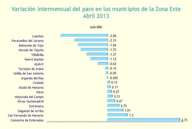 Abril fue, según el Gobierno, un mes relativamente bueno para el empleo, el segundo mejor abril desde el comienzo de la crisis, y con las cifras oficiales bajando de los cinco millones de parados. Pero en la Zona Este de Madrid esos datos no fueron tan buenos: la región terminaba el mes con 63 nuevos inscritos en las listas del desempleo, sobre todo por culpa del mal comportamiento de los municipios grandes. Tan sólo Arganda y Torrejón creaban empleo, ligeramente, mientras que Alcalá, Coslada, San Fernando y Rivas lo destruían. Entre los pequeños, también un poco de todo: Paracuellos y Loeches tienen unas muy buenas cifras, mientras que Camarma se alza con el dudoso honor de ser el municipio con peor comportamiento en términos relativos. Por municipios, Alcalá de Henares comenzaba mayo con 37 nuevos desempleados, lo que lleva el total a 21.871 parados en la localidad complutense. Por sectores, la Industria sigue siendo el talón de Aquiles de la economía complutense, y pierde casi setenta trabajadores en el mes. Esta subida es la responsable de los datos, ya que, tanto Construcción como Servicios tuvieron un buen comportamiento en la localidad. Incluso bajó el desempleo en el sector agrícola. Torrejón tiene el mejor comportamiento de los municipios grandes de la Zona Este, tanto en términos absolutos como relativos, al recortar su desempleo en veinte personas. No obstante, el total de desempleados torrejoneros sigue siendo de 14.371 personas. La razón de la diferencia con la localidad complutense es la destrucción menor de tejido industrial en Torrejón, que pierde veinte empleos en el mes. Un muy buen comportamiento del Sector Servicios, y un crecimiento del agrícola son otras claves de las cifras torrejoneras. Coslada y San Fernando no consiguen buenos datos este mes. Las dos localidades del Corredor destruyen empleo, aunque en distinta magnitud. Así, Coslada, con once desempleados, es la localidad, de entre las grandes, que menos empleo destruye, mientras que San Fernando, con 52 nuevos parados, es el peor municipio de los grandes en términos relativos, y el que más empleo destruye en términos absolutos. Así las cosas, Mayo comienza con 8.195 cosladeños y 4.046 sanfernandinos en las listas del paro. En el Sureste, por su parte, una de cal y otra de arena: Arganda, con tres parados menos, es el segundo mejor municipio de entre los grandes, mientras que Rivas, con 27 nuevos parados, es el segundo peor, solo superado por San Fernando. Arganda comienza el mes con 6.488 parados, mientras que Rivas lo hace con 5.820. Paracuellos y Morata esta vez tienen un comportamiento muy parecido: las dos crean empleo en el mes, en concreto, 18 morateños y 27 paracuellenses salieron de las listas de desempleo. Los dos municipios, así, se sitúan en la parte alta de la tabla, si bien destaca Paracuellos, que ocupa la segunda posición en términos relativos, y es el municipio que más empleo crea en términos absolutos. No obstante, Mayo comenzaba con 1.226 vecinos de Paracuellos y 1.008 de Morata en el paro. Entre los municipios pequeños destaca el caso de Loeches, que, con 26 desempleados menos, es el municipio que mejor comportamiento tiene en términos relativos. También crearon empleo en abril Ajalvir, con dos personas; Nuevo Baztán, con siete; Villalbilla, con 14; y Velilla, con 1. En la parte baja de la tabla, destaca el caso de Camarma, cuyos 37 nuevos parados lo convierten en el peor municipio del mes. Tampoco tienen buenos datos Estremera, que destruye un empleo; Meco, con 4; Mejorada, con 8; y Daganzo, también con 8 nuevos desempleados.