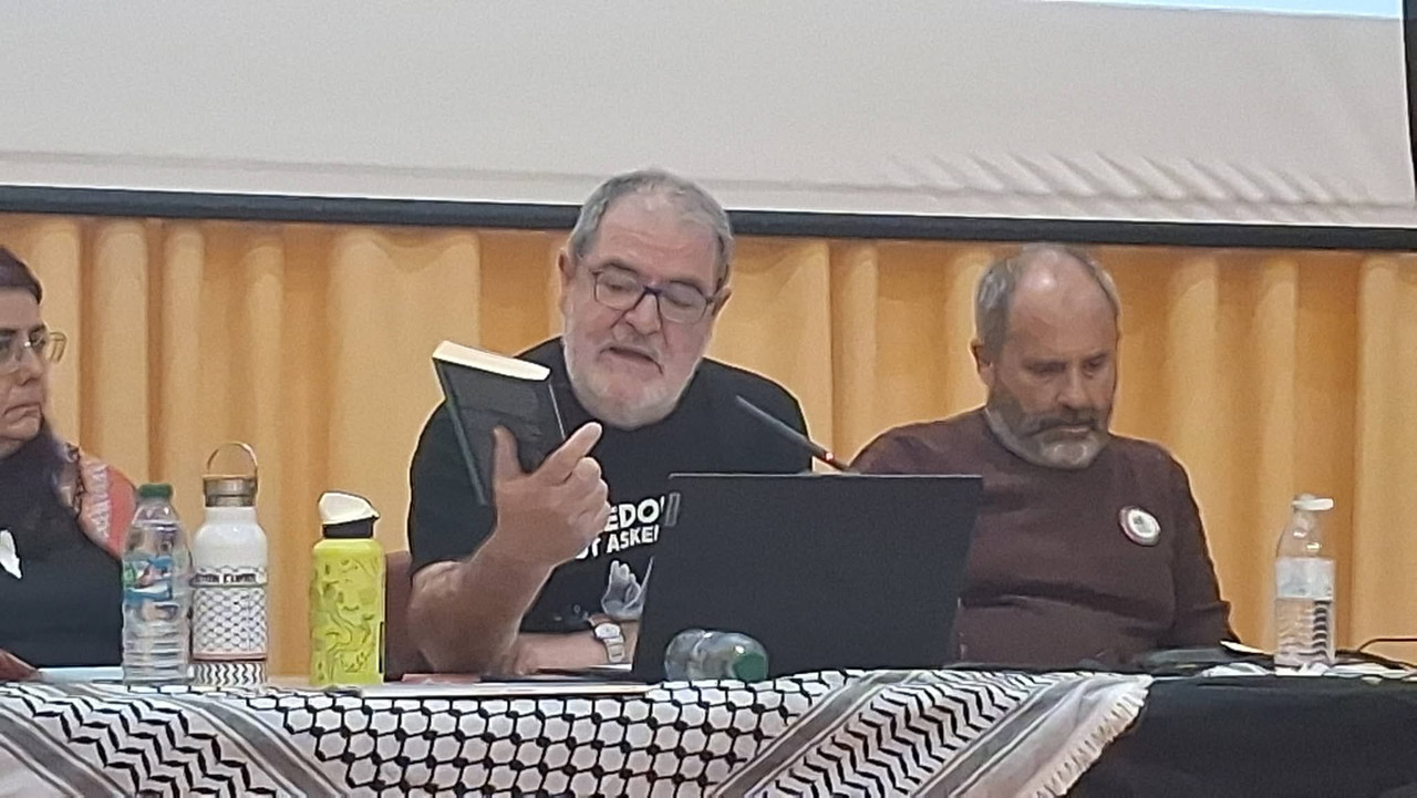 Marea Palestina, representada por Carlos Díez, pedagogo y portavoz del colectivo, resumió los actos que han celebrado en toda España desde el pasado mes de septiembre, cuando activistas consiguieron cortar la Vuelta Ciclista a España . El grupo, que reúne a profesores de todo el país, repasó sus principales acciones como la irrupción en pleno sorteo de la Lotería de Navidad o una concentración el 12 de octubre, así como el encierro de varios docentes en el Círculo de Bellas Artes de Madrid para exigir el embargo de armas a Israel .