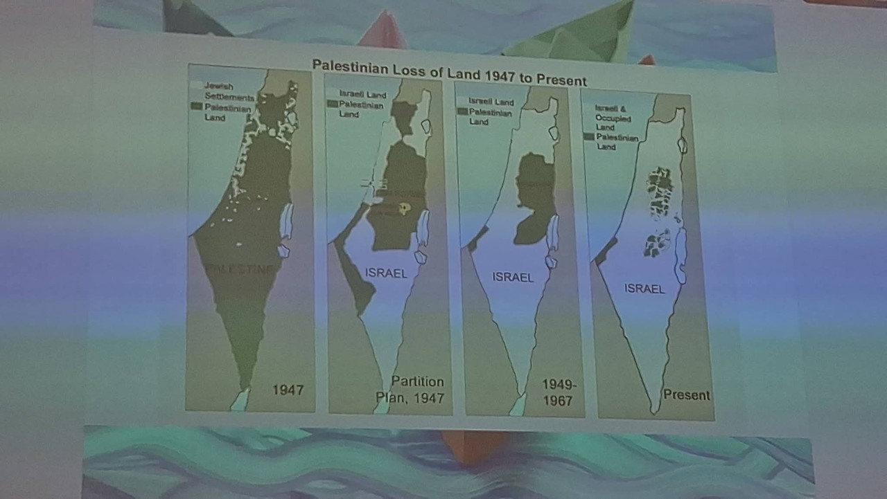La charla de Pablo Aceña tuvo una primera parte original y muy interesante: tras una breve introducción al conflicto, se repasaron algunos de los principales símbolos que utiliza la resistencia palestina.
