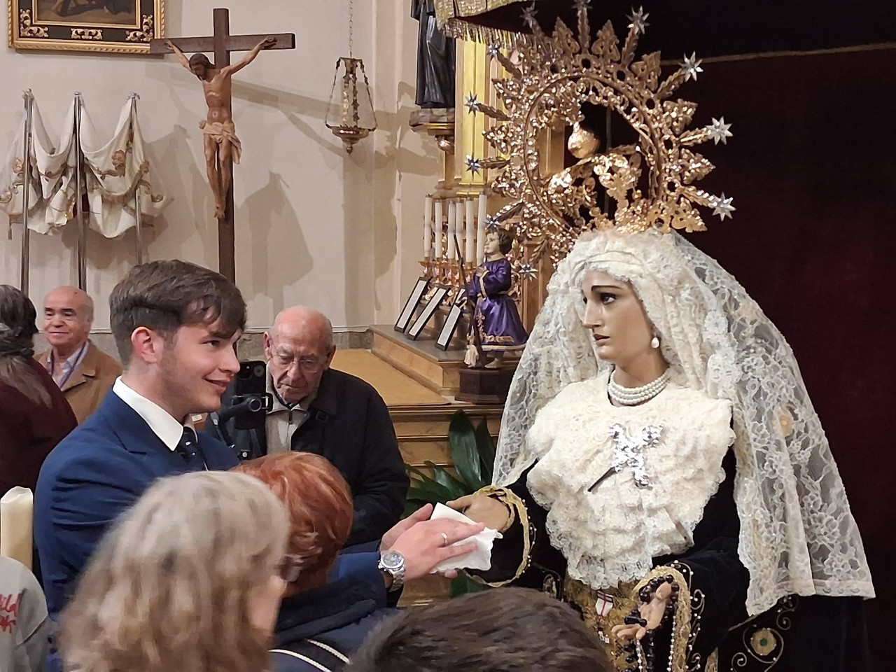 Torrejón de Ardoz decidió comenzar su Semana Santa por todo lo alto. Aprovechando la celebración del Viernes de Dolores, la Hermandad de la Vera Cruz impuso la Medalla Militar al Mérito en el Trabajo con Distintivo Blanco a su titular, la Virgen de la Soledad, en un acto que reunió a centenares de fieles en la Iglesia de la Plaza. La insignia, concedida en su día al Coronel de la Fuente, pasaba a ser propiedad de la hermana María Concepción Dominguez Romero, que se la cedía a su vez a la titular de la Hermandad, y le fue colocada a la imagen en el momento más emotivo de una larga ceremonia de casi dos horas que sirvió como preludio a los días grandes de la Pasión en el municipio.